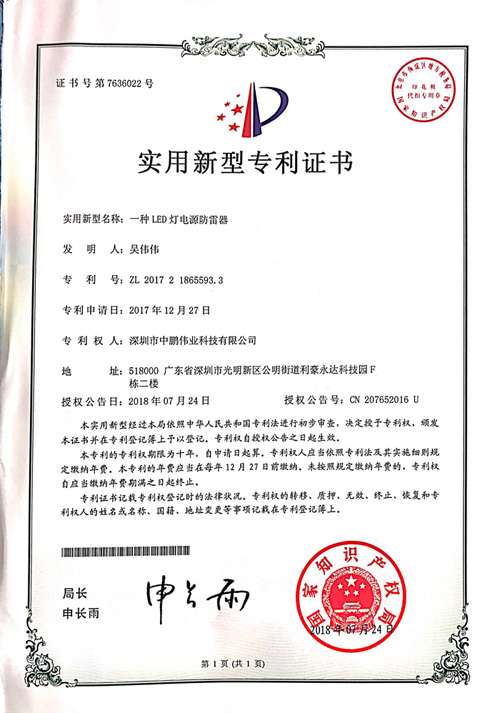 廣東中鵬防雷科技有限公司 10年專注高端防雷產品研發制造